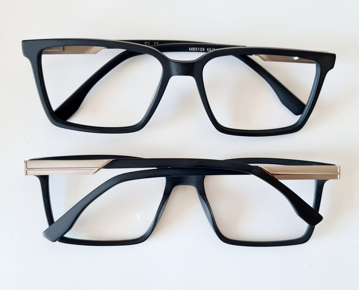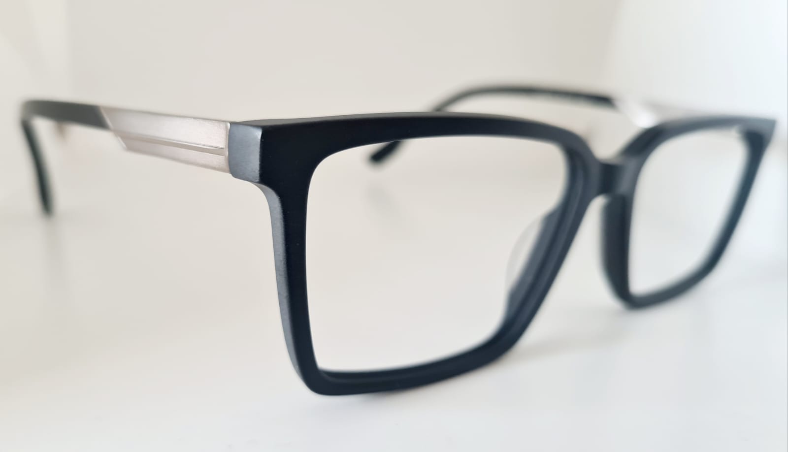 Com design imponente e linhas bem definidas, essa armação retangular em acetato fosco preto combina perfeitamente com o detalhe metálico nas hastes, criando um visual sofisticado e contemporâneo. Ideal para quem busca estilo e presença no dia a dia.