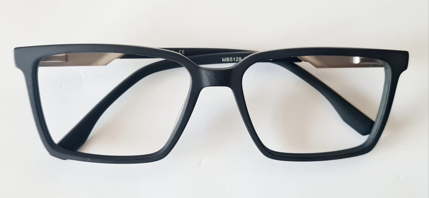 Armação Retangular Masculina Preto Fosca com Detalhe Metálico – Modernidade e Sofisticação