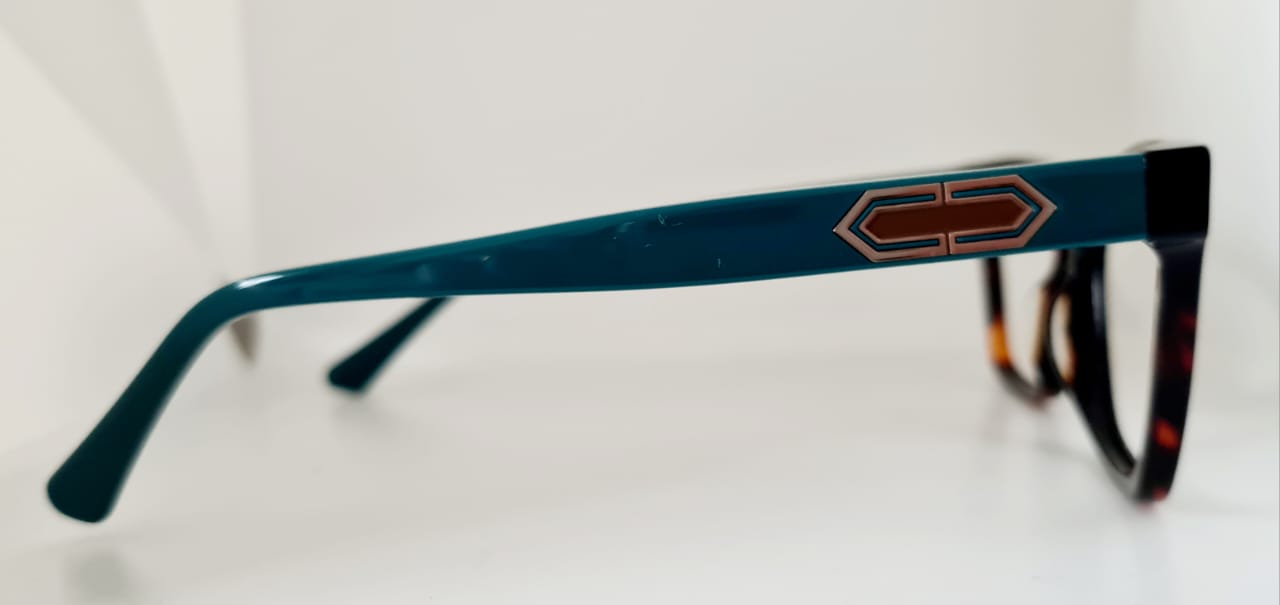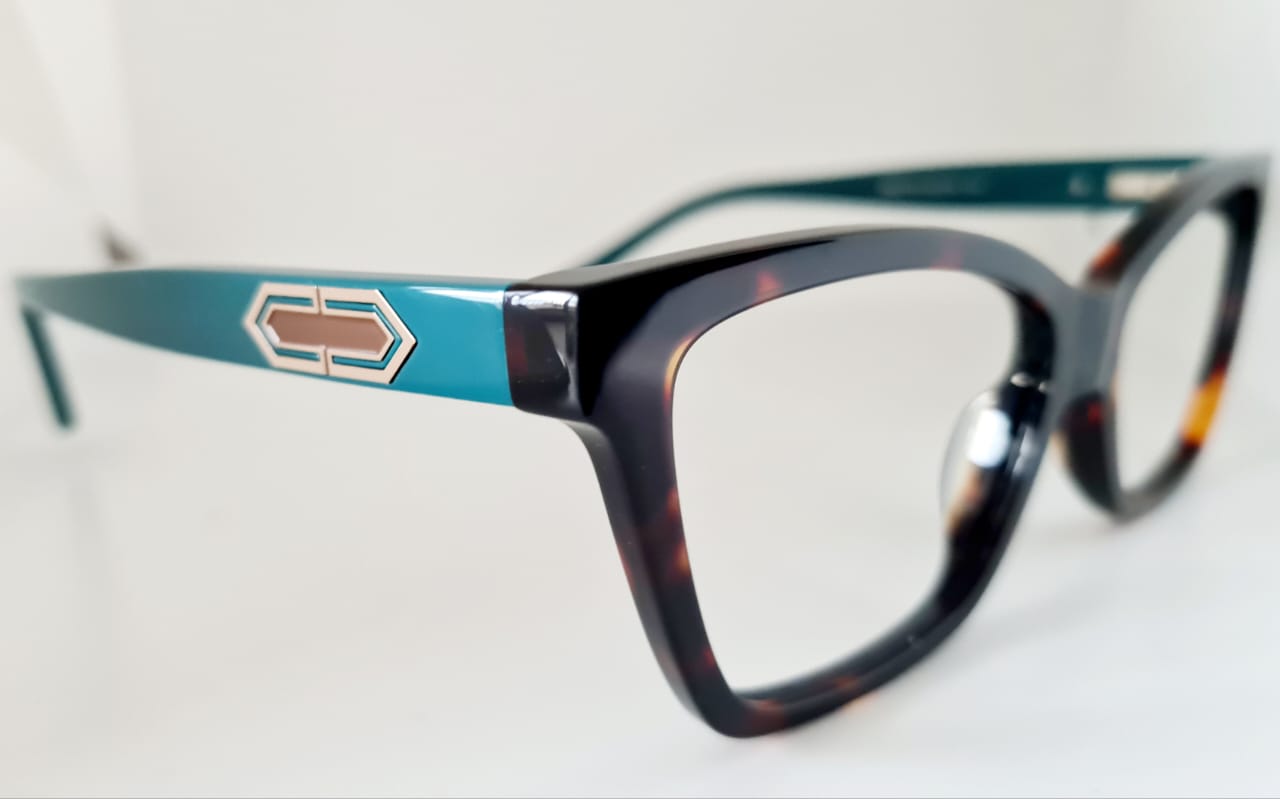 Essa armação une o clássico padrão tartaruga na parte frontal com hastes em azul turquesa vibrante, criando um visual único, elegante e contemporâneo. O detalhe metálico nas hastes adiciona um charme extra, perfeito para quem busca sofisticação com personalidade.